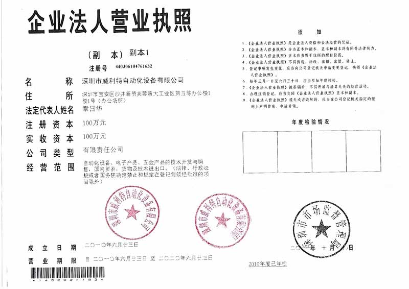 深圳市威利特自动化设备有限公司 >> 资质证书